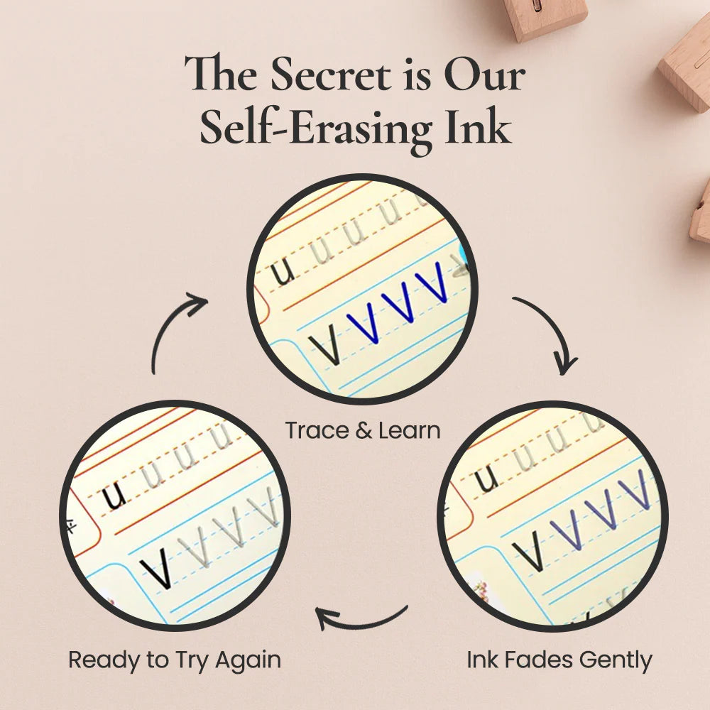 This reusable copybook comes with a magic ink pen that vanishes in minutes, letting your child practice handwriting endlessly without wasting paper or buying new books.Refilling the pen is quick and easy, so the learning never stops!