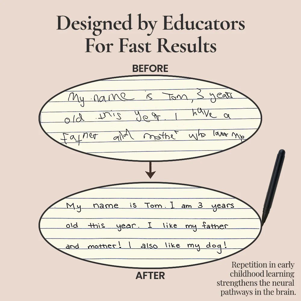 Writing is a continuous practice that lets your child improve their handwriting, build muscle memory, and improve every single day.